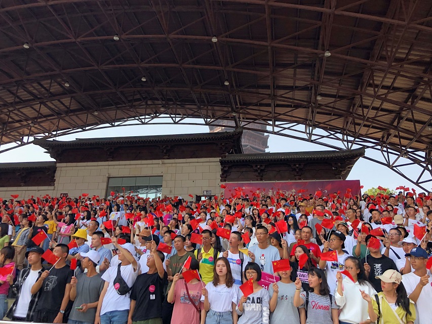 最后,我们来到了“黑石号”特技秀的场地,作为湘潭大学众多学子的一份子,为即将到来的祖国母亲70周年的华诞庆祝欢呼歌唱,与湘大铜官窑研学团一起合唱《我和我的祖国》。合唱结束大家一起观赏一场令人感叹的特技表演,一场视觉的盛宴。