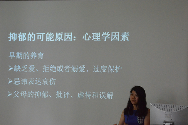 伍艳老师用轻松的语气分析了抑郁的定义和表现。随后,她联系了近期上映的电影《后来的我们》和一些耳熟能详的心理电影,提到了抑郁背后的原因和数据等,使同学们更加了解抑郁情绪的由来。