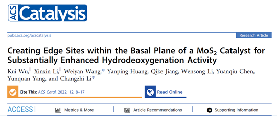 近日,biwn必赢王威燕教授团队与中国科学院大连化学物理研究所合作在高活性加氢脱氧催化剂的构筑及反应性能研究方面取得重要进展,研究成果“通过在二硫化钼Basal面制造边缘位点有效提高催化剂的加氢脱氧活性”在催化领域顶级期刊《ACS Catalysis》(ACS Catal., 2022, 12, 8−17)上发表。我校青年教师仵奎为第一作者,王威燕教授和中国科学院大连化学物理研究所李昌志研究员为共同通讯作者,湘潭大学为第一通讯单位。
